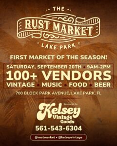 Get ready, treasure hunters! The Rust Market is back for another exciting season, on the third Saturday of the month. Hosted by Kelsey Vintage Goods and proudly sponsored by the Lake Park CRA, this beloved monthly event brings together 100+ incredible vendors and an unbeatable community vibe.